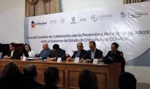Donde participo en la firma del convenio de colaboración para la prevención y atención de las adicciones entre Gobierno del Estado y la CONADIC.