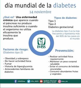 Lo anterior es en el marco del Día Mundial de la Diabetes, instaurado el 14 de noviembre por la Federación Internacional de Diabetes (FID) y la Organización Mundial de la Salud (OMS), mediante el cual se realiza la campaña internacional más importante para hacer conciencia sobre este padecimiento.