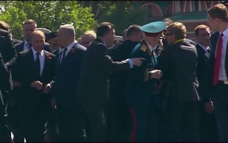 Durante su recorrido por la Plaza Roja, un veterano que permanecía en el lugar fue empujado por los guardias de Putin.