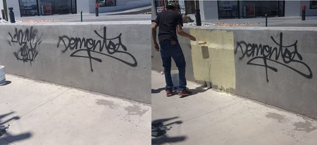 Los responsables cubrieron con pintura lo que anteriormente habían realizado y en todo momento se contó con el acompañamiento de elementos para asegurarse que se hiciera de manera correcta y segura.