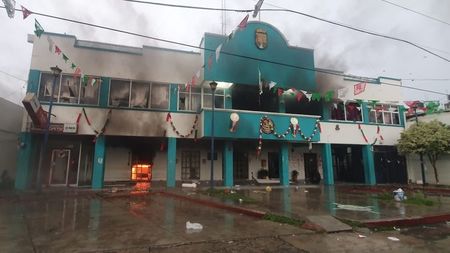 En respuesta, luego de que la policía se retiró, los manifestantes se concentraron frente a la Presidencia Municipal, rompieron vidrios y lanzaron al interior envases con gasolina. Luego se retiraron.