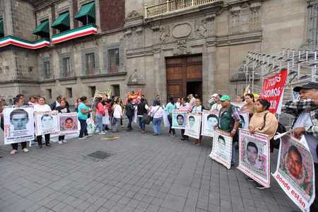 Los manifestantes de la Central de Abasto, quienes mantienen tomadas todas las puertas de Palacio Nacional, permitieron la entrada de los padres de los normalistas poco después de las 9:00 horas para que se reunieran con el Presidente.