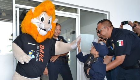 Enrique Antonio llegó a las 13:30 horas al hangar del Halcón 1, a bordo de una patrulla del grupo DARE, acompañado de sus padres Enrique Casas y Carolina López, así como de su hermano Adrián, donde fue recibido cálidamente por elementos del DARE, K-9, Unidad de Operaciones Aéreas (UOA), coordinadores de distrito y los subdirectores Julio César Salas y Roberto Ortiz de la Rosa.