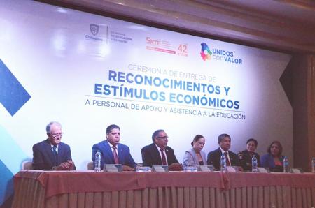 Personal de apoyo y asistencia a la educación que labora en el subsistema educativo estatal y que cuenta con 10, 15, 20, 25, 28, 30 años o más de servicio, fue beneficiado con la entrega de bonos económicos.