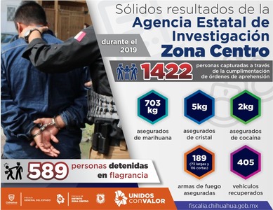 La Agencia Estatal de Investigación Zona Centro, a través de trabajo coordinado entre el personal de campo y gabinete, ha logrado sólidos resultados durante el 2019.