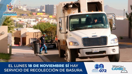 El Gobierno Municipal informa que a pesar de que el lunes 18 de noviembre es un día inhábil, el servicio de recolección de basura habitacional se prestará de forma regular.