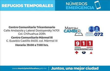 Los refugios temporales abren de siete de la tarde a siete de la mañana y se ubican en: