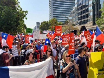 Cerca de un millar de manifestantes expresaron su rechazo a elaborar una nueva Constitución y respaldaron la continuidad de la actual carta magna heredada de la dictadura de Augusto Pinochet (1973-1990).
