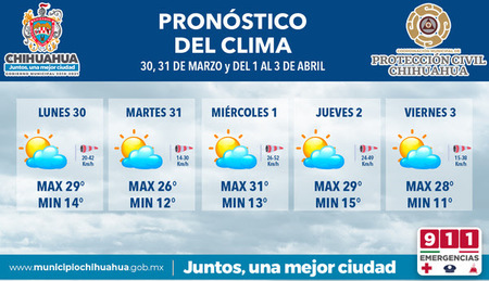 Según informó Joel Estrada Castillo, titular de la mencionada dependencia, no se esperan descensos alarmantes en la temperatura, sin embargo, durante las madrugadas y noches el termómetro continuará bajando ligeramente, por ello es importante estar atento a las recomendaciones que emite la autoridad municipal para evitar problemas de salud e incidentes relacionados con los cambios bruscos de clima, así como de los fuertes ventarrones que se avecinan por la temporada.