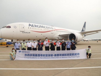 Se trató de una operación directa entre el aeropuerto de Shenzhen, China y la Ciudad de México con un recorrido sin escalas de más de 14 mil kilómetros en uno de los 19 aviones Boeing 787 con los que cuenta la aerolínea, que es también la flota de cabina ancha con matrícula mexicana más grande que ha registrado el país.