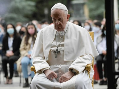 El rezo tuvo lugar en presencia de un centenar de personas, implicadas de una forma u otra en la pandemia de Covid-19 -que causó más de 33 mil muertos en Italia-, como personal sanitario, miembros de protección civil y otros.