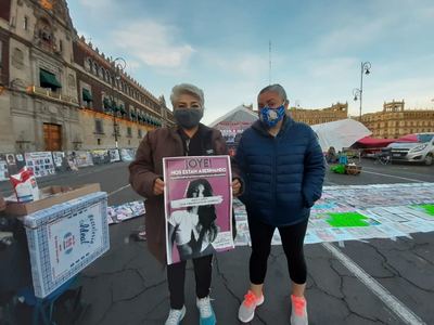 Familiares de víctimas de feminicidios se unieron, la mañana de este viernes, al plantón permanente frente a Palacio Nacional.