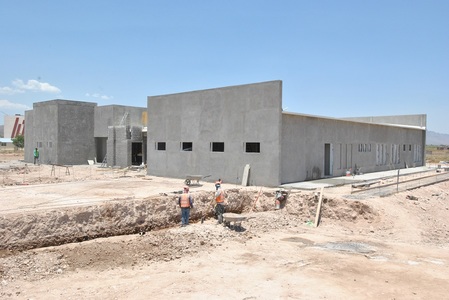 Dentro de los trabajos que actualmente se realizan, se encuentra la edificación de muros de contención y preparación para banquetas de plaza de acceso; construcción de banquetas perimetrales y detalles en enjarres exteriores.