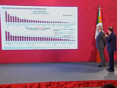 Al presentar datos del Secretariado Ejecutivo del Sistema Nacional de Seguridad Pública (SESNSP), detalló que la cifra de junio en este rubro representa una disminución respecto al mismo periodo de 2019 cuando se registraron 3 mil 004 casos.