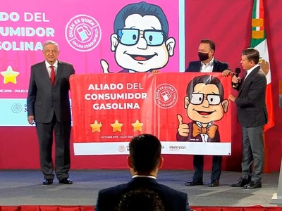 Durante la conferencia, el presidente, acompañado por el titular de la Profeco, Ricardo Sheffield, reconoció a empresarios que se dedican a la distribución de combustible por mantener precios justos a los consumidores durante esta crisis por el Covid-19.