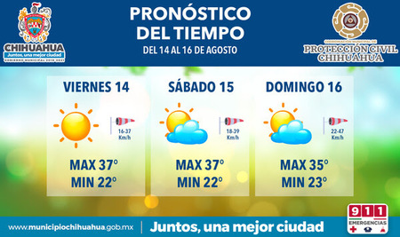 Para este fin de semana seguirán las altas temperaturas en la ciudad con hasta 37 grados centígrados, según datos obtenidos por la Coordinación Municipal de Protección Civil, de acuerdo al pronóstico del clima emitido por el Servicio Meteorológico Nacional, aunque habrá nublados escasos que atenuarán la intensidad de los rayos del sol.