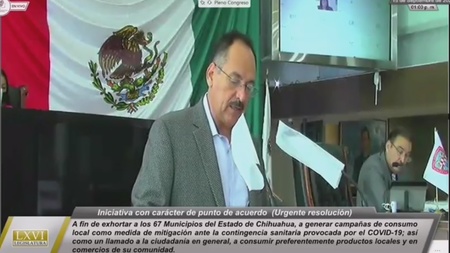 El diputado local del Partido Encuentra Ciudadano Obed Lara Chávez, presentó una iniciativa de Punto de Acuerdo con carácter de urgente resolución a fin de exhortar a los 67 municipios del Estado de Chihuahua a generar campañas de consumo local como medida de mitigación ante la contingencia sanitaria provocada por el COVID-19, así como un llamado a la ciudadanía en general a consumir preferentemente productos locales y en comercios de su comunidad.