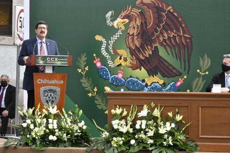 “Los ideales de la Independencia por los que los hombres y mujeres lucharon siguen vigentes hoy en día. Lo podemos ver en Chihuahua al tiempo que hacemos frente con dignidad y valentía y solidaridad a las problemáticas que se nos presentan. La defensa de la nación y de lo nacional ha sido característica de nuestra identidad como mexicanos y las y los chihuahuenses no son la excepción”, expresó en el evento que se realizó en memoria de los héroes de la Independencia, sin público y sin el desfile cívico-militar.