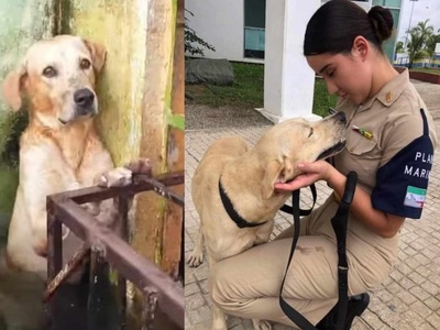 El perro labrador fue llevado a las instalaciones navales en Villahermosa, donde fue revisado y permanece en el lugar.