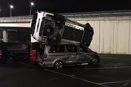 En las fotos publicadas en la prensa local, podía verse una camioneta volcada encima de otra, y algunas más completamente abolladas o con el capó destrozado.