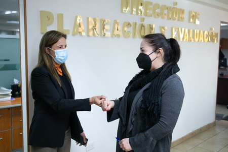La presidenta municipal María Angélica Granados Trespalacios recorrió este jueves por la tarde las instalaciones y saludó al personal de la Dirección de Planeación y Evaluación.
