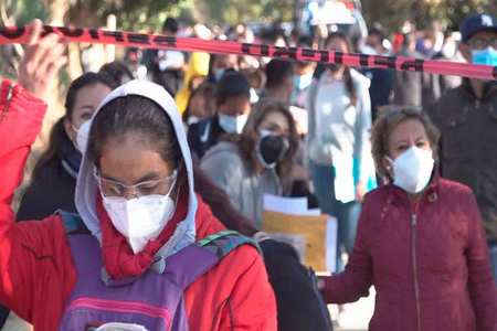 Personal de primera línea y administrativos formaron una fila de más de 300 metros desde las cinco de la mañana hasta el mediodía de este jueves para recibir la dosis.