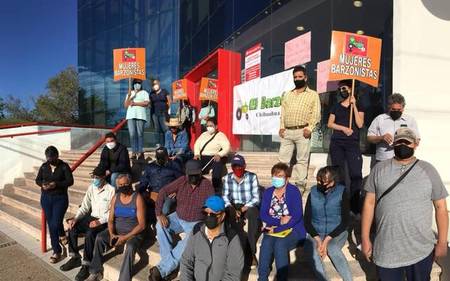 Los ciudadanos integrantes de El Barzón se apostaron en las inmediaciones de la sucursal ubicada en el boulevard Antonio Ortiz Mena y California en residencial Campestre.