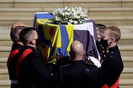 El cortejo que acompaña al féretro del príncipe Felipe salió este sábado del patio del castillo de Windsor, la residencia real del oeste de Londres donde murió hace ocho días el marido de Isabel II, hacia la capilla de San Jorge, donde será enterrado.