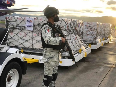 Esta mañana a las 6:52 am arribó el primer embarque de vacunas Johnson & Johnson contra Covid-19 a México, un millón 350 mil dosis al aeropuerto de Toluca, Estado de México.