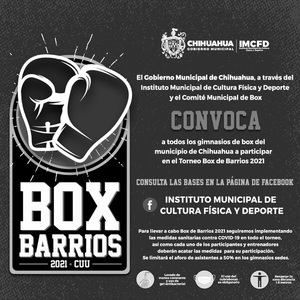 El Gobierno Municipal a través del Instituto Municipal de Cultura Física y Deporte, en coordinación con el Comité Municipal de Boxeo dieron a conocer la convocatoria del Torneo Box de Barrios, que se llevará a cabo durante cuatro fines de semana, contando con protocolos sanitarios de prevención en cada uno de los recintos.