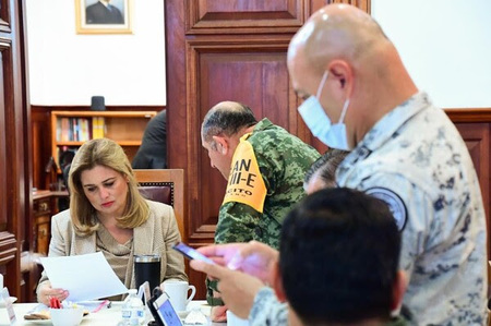 Durante la sesión de la Mesa Estatal de Seguridad, la gobernadora del Estado, Maru Campos Galván, se reunió con Roberto Fierro, fiscal general del Estado, así como con el secretario de Gobierno, César Jáuregui y representantes de la Guardia Nacional, el Ejercito Mexicano y la Fiscalía General de la República para dar seguimiento a varios acontecimientos durante la semana pasada, la cual destacó por su gran actividad en acciones en defensa de la seguridad de la ciudadanía.