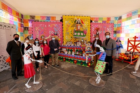 Durante la presentación de la ofrenda, Anahí Vargas dijo que las festividades de Día de Muertos en México son reconocidas como patrimonio oral e inmaterial de la humanidad por la Organización de las Naciones Unidas para la Educación, la Ciencia y la Cultura (UNESCO), su origen data desde tiempos precolombinos y los purépechas en el estado de Michoacán son de sus máximos exponentes.