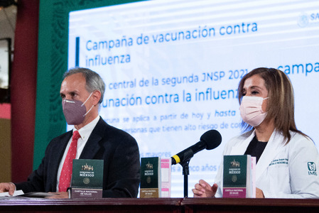 La directora de Prestaciones Médicas del Instituto Mexicano del Seguro Social (IMSS), doctora Célida Duque Molina, participó en el inicio de la Campaña Nacional de Vacunación contra Influenza, que se llevó a cabo en el salón de Tesorería de Palacio Nacional.