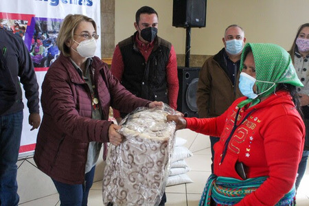 Los asistentes recibieron paquetes alimenticios, granos y cobijas, como parte del trabajo conjunto que realizan DIF Estatal y COEPI en localidades de la región serrana, para aminorar los efectos de la temporada invernal entre los pobladores de la zona.