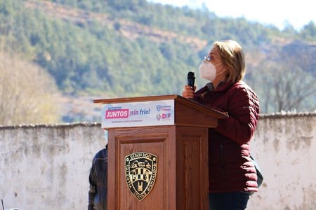 Como parte de la campaña solidaria “Juntos sin frío”, la presidenta del DIF Estatal, María Eugenia Galván Antillón, entregó a 120 niñas y niños chamarras y bonetes que fueron donados por los chihuahuenses, a fin de evitar enfermedades provocadas por las temperaturas bajo cero que se presentan en la región.