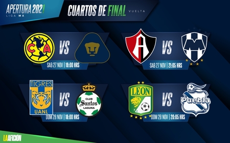 La Liga MX anunció las fechas y horarios de los cuartos de final del Apertura 2021, donde son ocho equipos los que seguirán en la pelea por el título del actual certamen, fase que inició este miércoles 24 de noviembre.