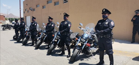 Al rugir de los potentes motores, debidamente uniformados y listos en formación, es como los 28 elementos, entre ellos dos mujeres, que conforman el grupo de motociclistas de la Dirección de Seguridad Pública Municipal, se preparan diariamente para dar inicio a sus actividades.
