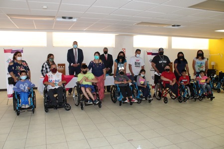 El DIF Estatal, a través de la Dirección de Rehabilitación, de manera conjunta con la Fundación Telmex y la Administración del Patrimonio de la Beneficencia Pública, hizo entrega de 10 sillas de ruedas a menores con alguna discapacidad que estudian en los Centros de Atención Múltiple (CAM) de Ciudad Juárez.