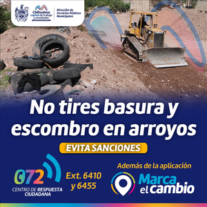 El Gobierno Municipal, a través de la Dirección de Servicios Públicos Municipales, exhorta a la población en general a evitar tirar basura y/o escombro en los cauces de los arroyos y en canales de la ciudad.