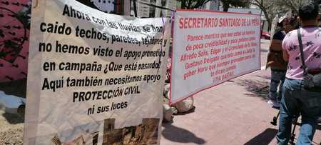 Ante esto colgaron unas mantas afuera de Palacio de Gobierno, detallando sus peticiones.