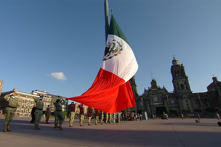 El presidente Andrés Manuel López Obrador encabezó el izamiento de la bandera a media asta en honor a todas las víctimas de los sismos del 19 de septiembre de 1985 y del 2017.