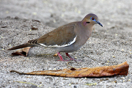 La paloma alas blancas se caracteriza por una franja blanca que muestra en su ala al estar detenida. Mientras que las palomas huilotas presentan una cola larga y puntiaguda, las plumas de la parte superior de la cabeza, dorso, rabadilla, coberteras de las alas y del centro de la cola son de un color gris castaño.